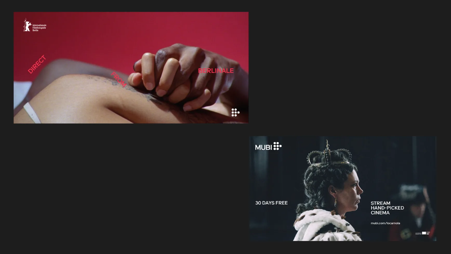 An international film platform and streaming service, MUBI curates and distributes arthouse, independent, and world cinema. Alongside its carefully selected streaming library, it supports contemporary filmmakers through theatrical releases, original productions, and MUBI GO — a cinema initiative offering members a curated film to see on the big screen each week.