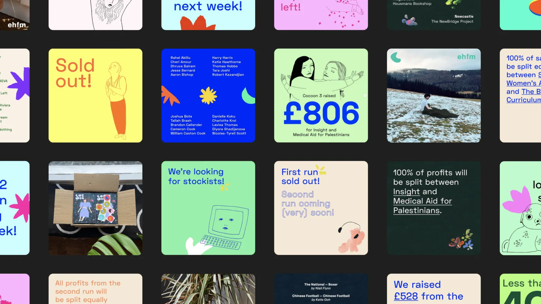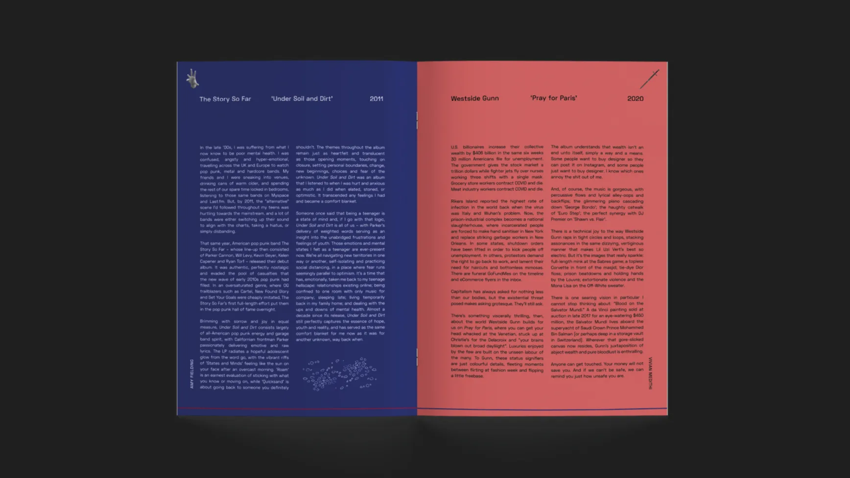 A print zine of essays from writers at The Guardian, Dazed, Pitchfork, gal-dem, NME, GQ, and The Face, reflecting on the albums that helped them through the COVID-19 lockdown and other challenging times. Across three issues, Cocoon raised over £2,800 for charities including Medical Aid for Palestinians, Scottish Women’s Aid, The Black Curriculum, and We Belong.