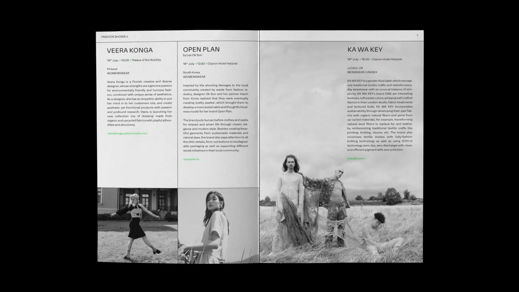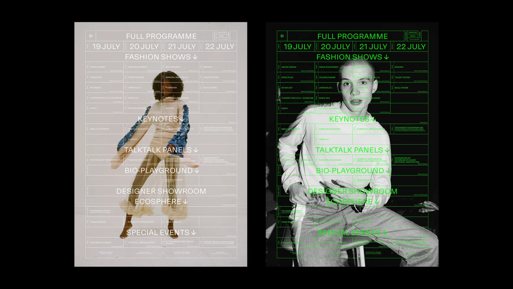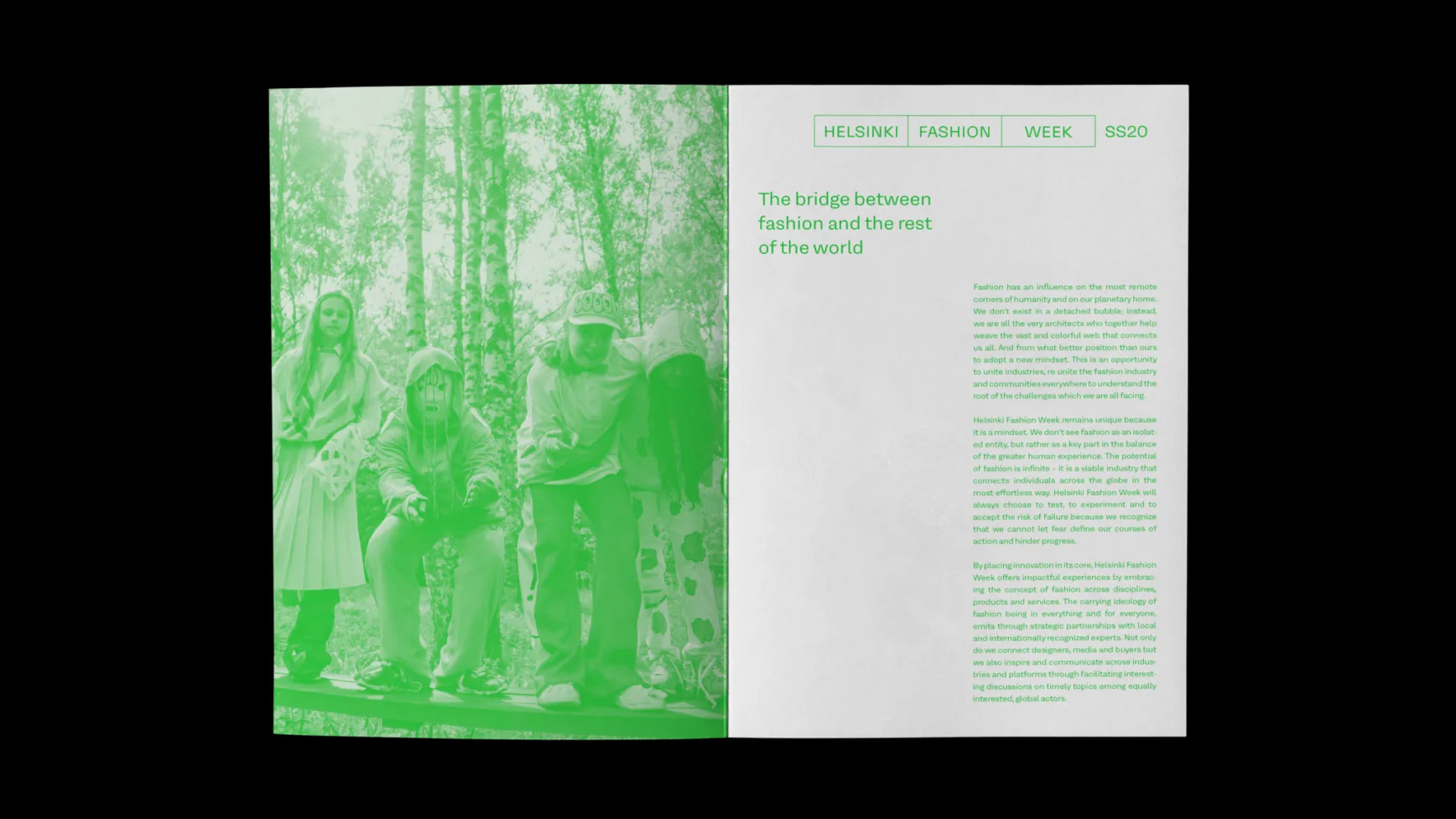 Spanning multiple venues across the city, the SS20 edition of Helsinki Fashion Week brought together local and international designers for a dynamic celebration of contemporary creativity. Alongside the core runway shows, it included immersive design elements and a major collaboration with ecoLogicStudio, expanding the focus beyond the usual style narrative into architecture, environment, and experience.